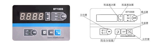 YGC-BT100S調(diào)速型蠕動泵功能及特點: • 4位LED數(shù)碼管顯示轉(zhuǎn)速和工作模式; • LED指示燈顯示正反轉(zhuǎn),內(nèi)控、外控、腳踏開關(guān)等工作狀態(tài); • 面膜按鍵操作; • 具有啟停、正反、全速,調(diào)速、狀態(tài)記憶(掉電記憶)等功能; • 簡易分裝控制,實現(xiàn)重復(fù)傳輸定量液體的功能; • 轉(zhuǎn)速分辨率0.1-100轉(zhuǎn)/分鐘時為0.1;100-150轉(zhuǎn)/分鐘時為1; • 不銹鋼外殼抗酸堿,耐腐蝕; • 大扭矩輸出,可以安裝不同泵頭,實現(xiàn)不同泵頭于驅(qū)動器組合; • 內(nèi)部結(jié)構(gòu)采用雙層式隔離設(shè)計,電路板加噴三防漆工藝,達(dá)到防塵防潮效果; • 抗干擾特性強,寬電壓設(shè)計,適用于復(fù)雜的供電環(huán)境; • 外控高低電平控制啟停,正反,簡易分裝,光耦隔離;外控模擬量調(diào)節(jié)轉(zhuǎn)速; • RS485通訊,支持MODBUS協(xié)議,方便與各種控制設(shè)備連接; • 可實現(xiàn)外部腳踏開關(guān)控制起停或時間分配器控制起停,實現(xiàn)簡易分配灌裝功能;